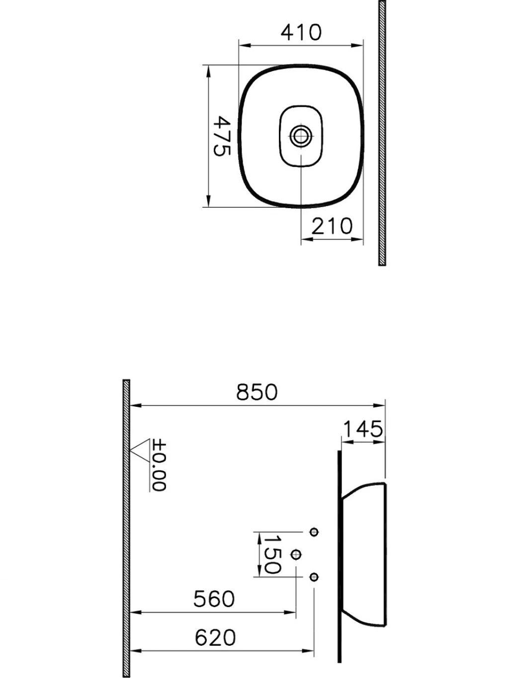 VitrA Outline 5994B450-0016 Kare Çanak Lavabo, 48 cm Armatür Deliksiz Mat Vizon